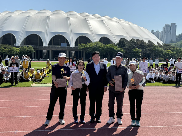 제19회 어르신체육대회 페이지 정보 작성일 24-05-17 14:53 본문 제19회 어르신체육대회○ 일시 : 2024.05.03.(금) ▷ 개회식 09:30 ○ 장소 : 아시아드 보조경기장 등 8개소 ○ 주최 : 부산광역시, 부산광역시체육회 ○ 주관 : 구군체육회, 회원종목단체○ 사하구 참여 현황 : 8개 종목, 114명 참가(게이트볼, 국학기공, 그라운드골프, 배드민턴, 축구, 탁구, 테니스, 파크골프)○ 대회 결과 : 배드민턴 - 1위, 축구 - 공동 3위, 탁구 - 2위, 최고어르신상 수상 - 탁구 김영숙 목록 이전글제18회 사하구족구협회장배 초청 족구 대회 24.05.30 다음글제28회 사하구테니스협회장배 클럽대항전 테니스대회 24.04.25