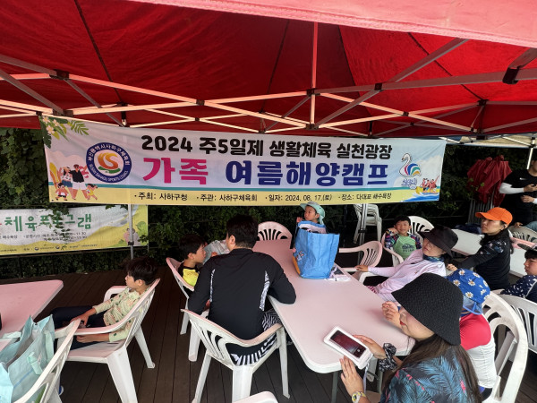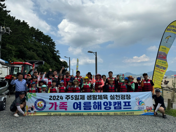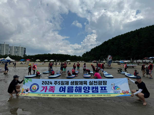 2024 주5일 생활체육 실천광장 (해양캠프) 페이지 정보 작성일 24-08-19 15:09 본문 2024 주5일 생활체육 실천광장 (해양캠프) 일시 : 2024.08.17.(토) 10:00~16:00장소 : 다대포 해수욕장2024 주5일제 생활체육 실천광장 가족여름캠프가 8월 17일 토요일에 다대포해수욕장에서 다대포해양레포츠센터와 연계하여 진행하였습니다.관내 거주하는 3인이상의 (보호자 참석 필수) 가족들이 모여서 진행되었고 sup와 서핑, 동력을 이용한 놀이기구(밴드웨건) 체험으로 진행되었습니다. 목록 이전글제 18회 사하구청장배 태권도 대회 24.08.19 다음글2024 어린이 체능교실 (해양캠프) 24.08.19